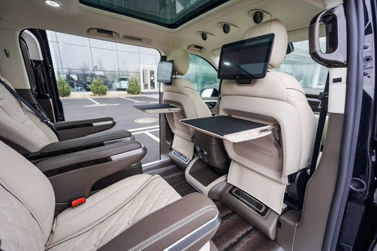 内饰方面,奔驰V260鲨鱼T版的布局设计与普通版车型基本保持一致,但黑白相间的配色,以及碳纤维多功能方向盘和大量碳纤维面饰板的搭配,使其运动氛围十足,给人的奔驰AMG才有的驾驶感觉。