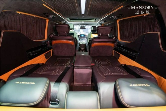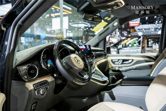 MANSORY迈莎锐MV600驾驶舱、乘客舱均隔音、隔热、降噪处理;首创的一体化环舱宽敞通明,空间体验远胜埃尔法、LM等同级别老牌MPV。全车精选Mastrotto小牛皮、Alcantara环保麂皮绒等顶级皮料、面料打造座椅、地毯、内壁、扶手箱、中控面板、顶棚、后备箱等区域;方向盘及多处饰板皆以碳纤维材料制造,奢雅个性跃然于表。