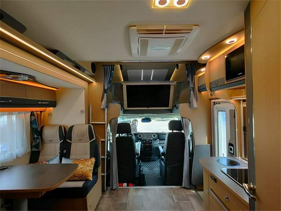 车身外饰也很丰富,配置有进口风感自动收回电动遮阳棚,点式驻车平衡器,一级电动踏步,贯通式行李舱、户外抽拉炉灶等。