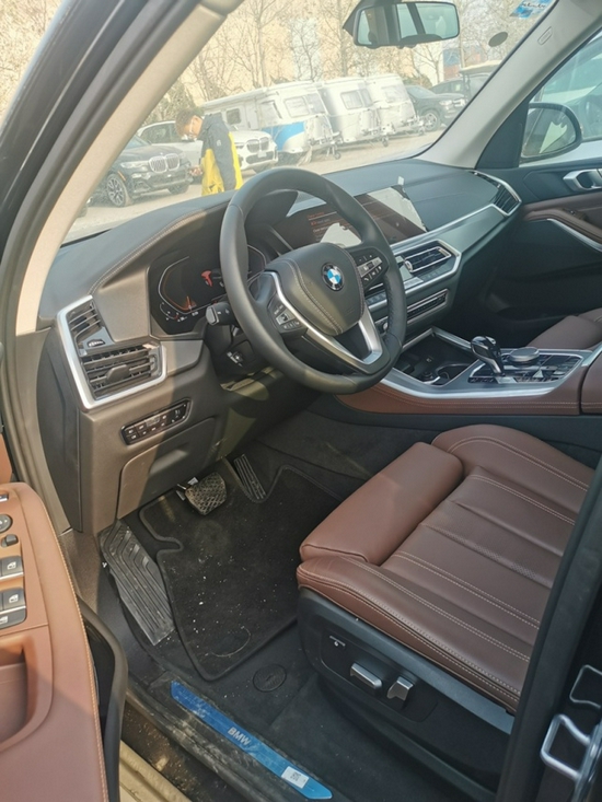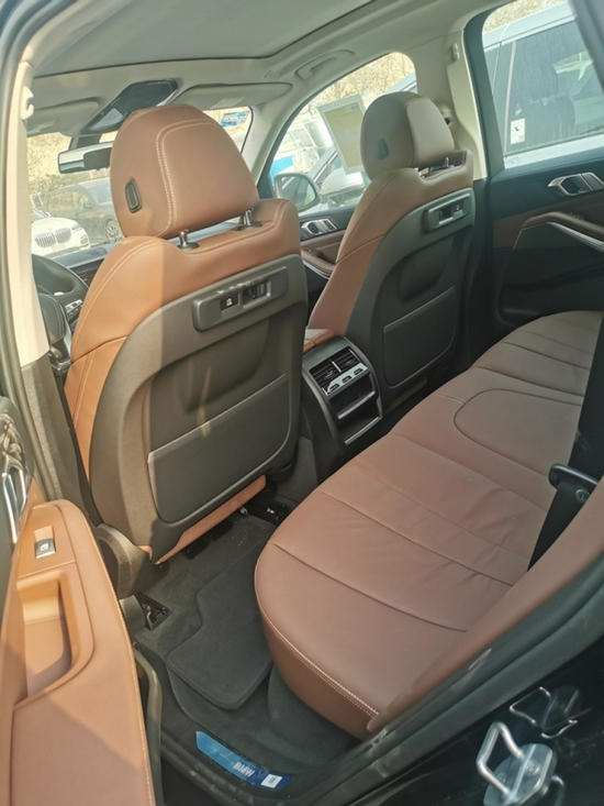 21款墨版宝马 X5颜色:黑/棕 国六B配置:液晶钥匙,XLINE包,19轮,全景天窗,智能卡,液晶仪表,导航大屏,LED大灯,LED日行灯,前座椅电动座椅,主驾驶座椅记忆,前排座椅带腰部包裹带腿托,自动空调,倒影,前后电眼,脚踏,脚感电尾,多功能运动方向盘,手势控制音量,氛围灯,地射灯,迎宾灯,防盗螺丝。
