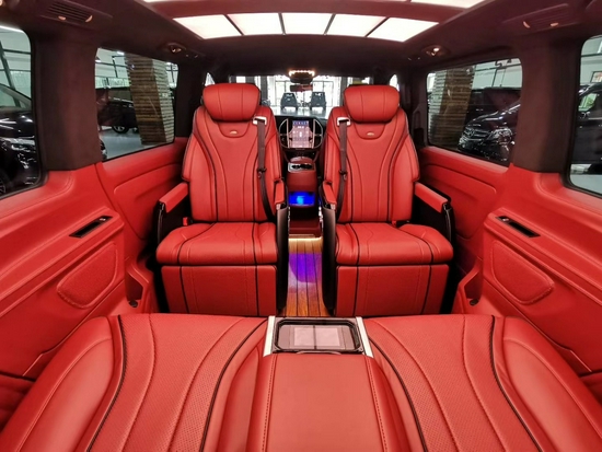 全车配备隐私窗帘,壁柱灯,翻毛皮顶棚,高级感十足。在如此豪华的车内,怎么不来瓶八二年的拉菲,再点上一首老歌,回忆过往,品味人生!