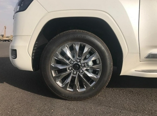 22款丰田酷路泽3500整体的侧面造型还是威武的风格,车身轮拱采用了略带立体感的设计,轮毂的尺寸一般,不过依旧显得简洁大方,侧窗线运用了舒展的硬朗造型,并且略带上扬的设计。