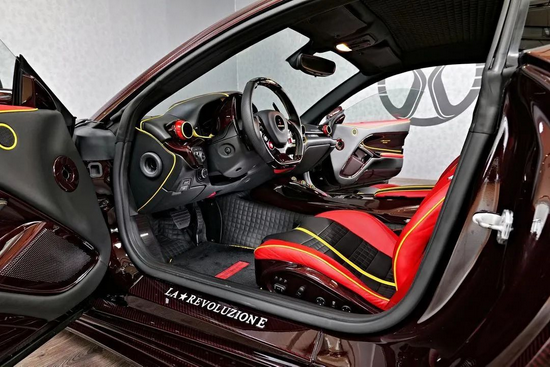针对一辆热情狂野中透着丝高贵优雅的暗红色法拉利F12berlinetta,MANSORY再次将它天马行空的“爆改”创意付诸于现实:以自家高压釜锻造而成的轻量化盾级碳纤维为F12berlinetta打磨出全套空气动力学车身组件。比较特别的是,此次MANSORY选择了更为稀有的红碳,远远看去与法拉利原厂暗红车漆融为一体,走近细看又能品鉴出碳纤维材质独一无二的华贵细腻。自此这款车有了一个全新的名字——MANSORY La Revoluzione。