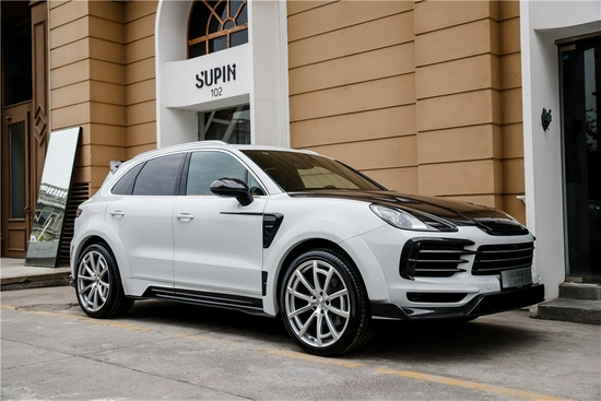 真正经得起推敲的品牌,必定不会拘泥于循规蹈矩。作为闪耀日内瓦车展的“流量巨星”,MANSORY并未针对这款细花白卡宴延续往日另类夸张的“魔改”风,而是在保留原厂雅尊气质的前提下,通过增加一个碳纤维宽体包围件来提升整体观感。此外,诸如:发动机盖带进气口、前唇、前/后保险杠、侧裙、扰流、后视镜罩、尾翼、后置扩散器等多个部位也都一一采用“轻胜铝、坚比钢、抗拉伸、耐高温”的黑线锻造碳纤维打磨而成的全套车身空气动力学组件做了全方位包覆升级。