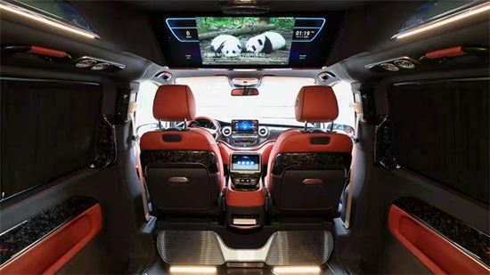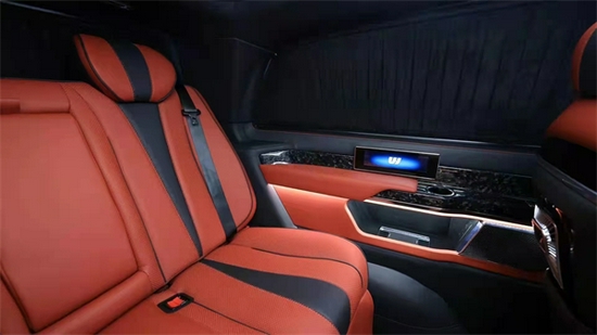内饰也是定制升级过的,显得高端大气。宽大的航空椅配上舒适头枕,坐在上面就想美美的睡上一觉。座椅带有多向的电动调节,超长的腿拖和功能智能座椅甄选材质,菱格纹理彰显精湛手艺。