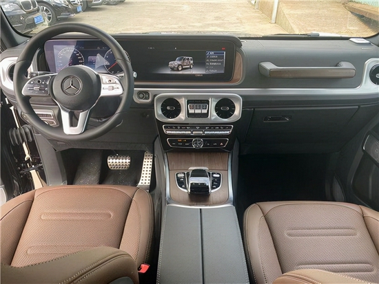 21款奔驰G350原先无论经历如何包装,选用各种高级材料重塑车厢,但从刻板的内饰面貌上只能传递出工具车的印记。如今进入全新奔驰G级 (配置|询价)的车厢后,能够看到最新奔驰家族化内饰设计,眼前的景象完全看齐自家SUV旗舰。车厢内除了经典的实木饰板外,还应用了金属、碳纤维和皮革等高级材质。