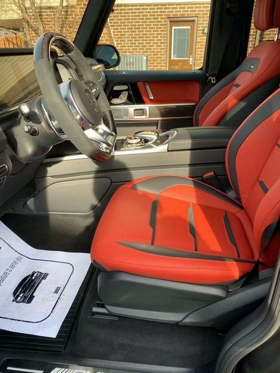 21款加版奔驰G63标配:4.0升V8AMG发动机,577匹马力,AMG变速TCT 9速变速箱,前座椅记忆,前排座椅加热,滑动玻璃天窗,三区气候控制,空气净化,电热挡风玻璃,加热方向盘,AMGNappa真皮性能方向盘,Burmester环绕声系统,苹CarPlay,64色LED环境照明,自动启动/停止,AMG性能排气系统,AMG高性能制动系统,红色的刹车卡钳,AMG控制自适应阻尼架,主动车道保持辅助,盲点辅助,主动刹车辅助,交通标志辅助,主动停车辅助,360度环影,主动多光束LED照明系统,LED日间运行灯,AMG暗夜包 黑色前保险杠22寸熏黑轮 金属漆 金属编织内饰。