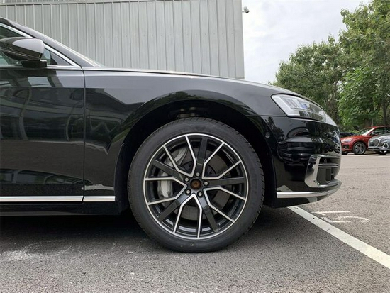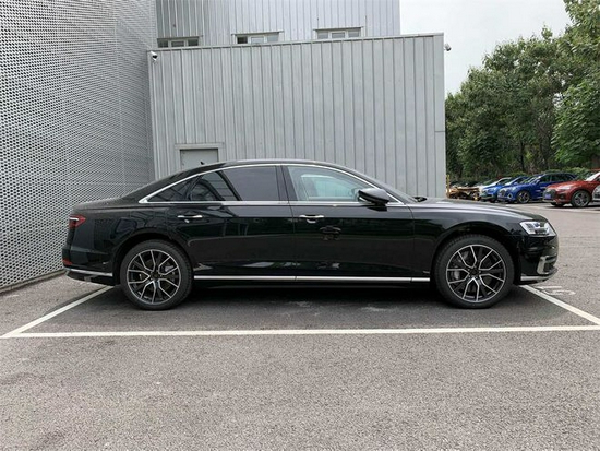 2021款奥迪A8L侧面腰身表现非常修长,隆起的线条营造出较强的层次,银色镀铬饰条对扁式车窗进行了一定包裹,是比较洋气的,多幅式轮毂的运动气息更加浓厚。