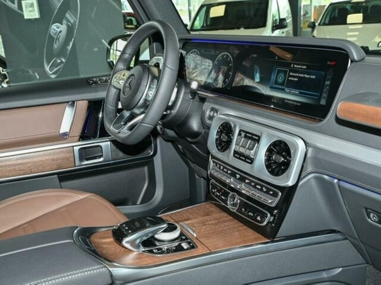 内饰方面,奔驰G500采用的依然是家族化造型,配备有三幅式多功能方向盘、贯穿式双联屏以及电子怀挡,科技感和豪华感营造的都比较到位,以及内饰豪华配置体现出的豪华感,大尺寸双联屏尺寸达到12.3英寸,中控中央依旧保留了三把锁的机械按键,下方还配有触控式的多媒体控制系统,整车搭配非常具有科技感。
