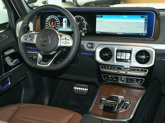 梅赛德斯-奔驰G级的座椅位置也相对较高,液晶仪表+大尺寸中控屏组成了视觉效果更显简洁和科技的双联屏,黑色座椅搭配红色缝线提升了运动气息。此外,与众多性能车和硬派越野车一样,新车内饰大量的采用了银色饰件,哑光处理后具有金属及机械风格。