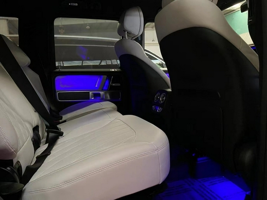 2021款奔驰G63新车内部采用了高档地毯、钢琴黑饰条和皮革座椅营造了一个十分豪华的内饰氛围奔驰G63豪华精致的真皮包覆提供了足够的舒适性和支撑性,通风和加热功能让乘客免受高温和寒冷的煎熬。中控台多处均采用碳纤维材料覆带彩色TFT显示屏的AMG仪表盘、