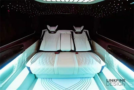 进入第三排我们深刻体验到这一点,第三排的座椅为贯通式设计,材质和舒适度与中排座椅一致,腿部和头部的空间可以用大的夸张来形容,创造出了绝等舒适的享受。在功能上后排座椅手枕中央配备了一小块儿液晶屏,可调控座椅的靠背和坐垫的前后移动,更为个性化的是整个后排座椅可以完全的放平,形成旅行床,可在上面短暂的休息,十分的惬意!我认为最后这一张三人椅,是一定不能少的,因为它既是一张椅子,也是一张床。不论是公司午休,还是户外度假,随时开启小憩模式。而且有了床,就一定要有窗帘,这样床的功能才会被发挥的淋漓尽致。