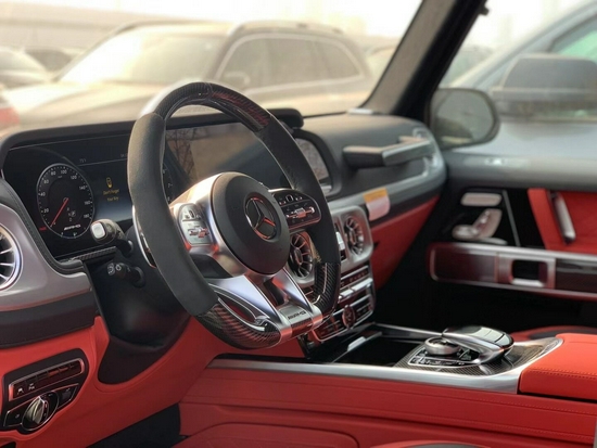 21款奔驰G63AMG经过全新改款后依旧是无懈可击的外观造型,前大灯得到了升级圆形LED日行灯内还有方形大灯,外圆内方的造型力量感十足,仔细观察后视镜也变得圆润了。内部采用了高档地毯、钢琴黑饰条和皮革座椅,营造了一个十分豪华的内饰氛围。