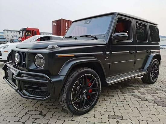 21款奔驰G63硬朗的方盒子造型,没有多余的弧度、没有任何曲线,眼光所及满是直锋利的线条,就连车顶上的导雨沟槽,也是沿着车顶周围一圈,分外焊接上去的金属槽,车门搭钮更是绝不虚心,硬挺挺地屹立在门缝之外,外凸的轮拱、造型如同 梯形的引擎盖。