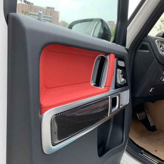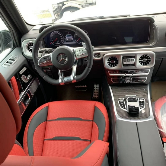 全新的直瀑式进气格栅可以说是家族最新的设计风格,也是在新车外观造型上与奔驰系列产品差异化最明显的地方。其中AMG系列的直瀑式格栅在新时代下的鼻祖可以说是AMG GT 车型,它内部由12根竖置镀铬饰条组成,同时新车的保险杠进气口相比G 500造型也更具有攻击性。此外,新AMGG 63最大的轮圈尺寸提供22英寸可选,进一步提升了它外观造型的彪悍程度。展车不仅采用了全新的车身涂装,还搭配了红色的轮圈装饰,更加个性。