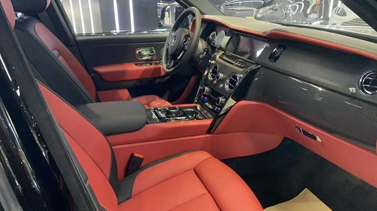 21款劳斯莱斯库里南的内饰延续了全新幻影的设计风格,整体用料依旧一如既往的奢华高贵,中控采用大面积实木打造,配合方向盘上的实木点缀,既复古又豪华。中控屏幕尺寸为10.2英寸的屏幕,轻触车门把手上按键就可以电动关闭,四座版的后排控制台与前部是断开的,在狭窄环境停车后排乘客可以选择任意一侧下车。