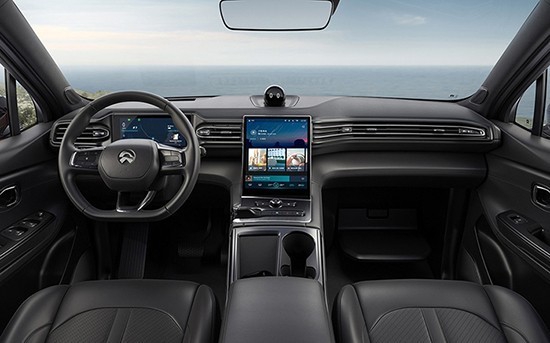 内饰方面蔚来有一个比较大的特点就是它中控正中间配有一个小机器人,它可以帮你识辨这台车所有你要用的系统然后进行语音控制,内饰比较沉稳大气的风格配备大量皮质装饰看上去非常豪华和商务。