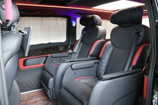 奔驰威霆改装高顶隔断7座商务车天使版第二排座椅安装进口首席航空座椅,加热通风按摩功能齐全,最大限度的减缓您的乘车疲惫。奔驰威霆改装无高顶无隔断7座商务车八向电动调节:电动头枕,电动腿托,前后电动调节,电动靠背调节。