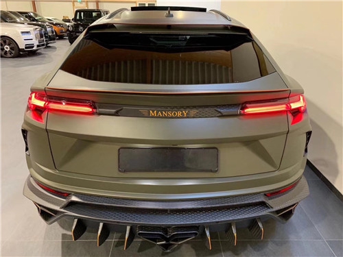兰博基尼Urus坚固的后肩稳定支撑着大角度倾斜的后车窗,整个尾部由相连的黑色面板包覆进气格栅、兰博基尼LOGO和Y字形尾灯,与后翼子板共同组成。后扩散器的设计灵感源于兰博基尼赛车,设有两组圆形排气管。Urus的内部设计和内饰呼应着它的外观,拥有鲜明的兰博基尼风格、色彩和个性。