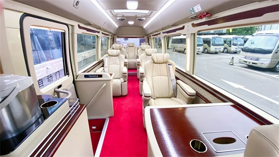 改装后的丰田考斯特呈现出多样的布局,座位数也是随着布局不断地变化,以其能够适应不同的用车环境。改装后的丰田考斯特商务车采用的是豪华版的真皮座椅,而且座椅的装饰上可以有自动调节座椅位置靠背角度以及电动脚踏等设置,我们可以根据自己的需求添加自动加热,通风等装置,满足我们在旅途下的各种需要。