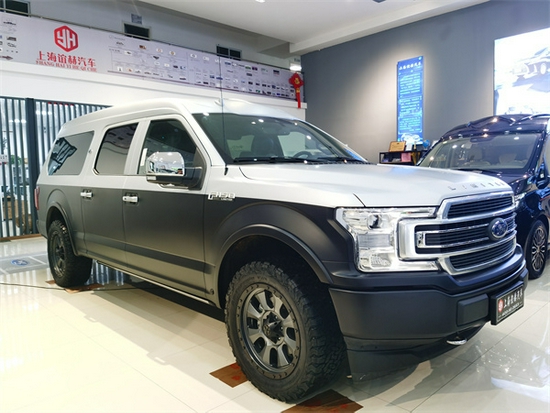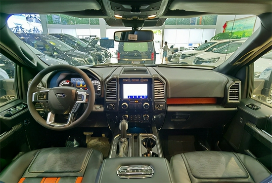 今天给大家带来的是最爆火的福特F150勇猛者,可以说是供不应求,底盘厂商也进行了涨价当然这也从侧面体现了大家对于这款车的喜爱;底盘公告也升级为了商务车公告,不再有皮卡的强制报废的限制,并且可以进入市区;外观方面采用了银色与黑色的双拼设计质感十足,前脸采用霸气的哑光中网,搭配两侧的疝气大灯,线条直硬朗,硬实大气。彰显了其霸气狂野的气质。整车尺寸:5.907米、宽度2.08米,高度2.16米;3.5TT双涡轮增压10速手自一体变速箱,最大可爆发381马力为我们提供超强的动力,同时内部空间也是十分宽阔的。