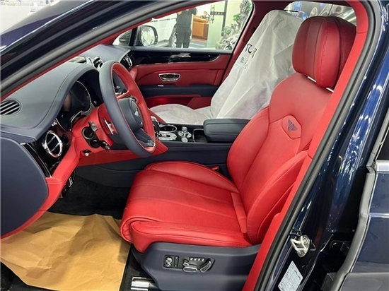 22款宾利添越真皮座椅摸起来很细腻,支撑性非常好,座椅处的缝线是纯手工打造的,相对于前排的高科技配置比较多,后排的乘坐空间宽敞舒适。