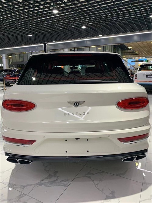 21款宾利添越车尾部分,新款添越使用了宾利最新家族式的尾部设计,整体看上去十分简洁、椭圆形尾灯犹如两颗珠宝,十分璀璨。双边共四出的排气,标志着新款宾利添越依然有着十分强悍的性能。