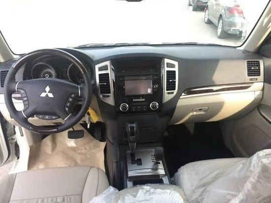 局部使用的深色桃木材质。进口三菱帕杰罗方向盘采用三幅真皮多功能方向盘,并集成了具有定速巡航控制键。