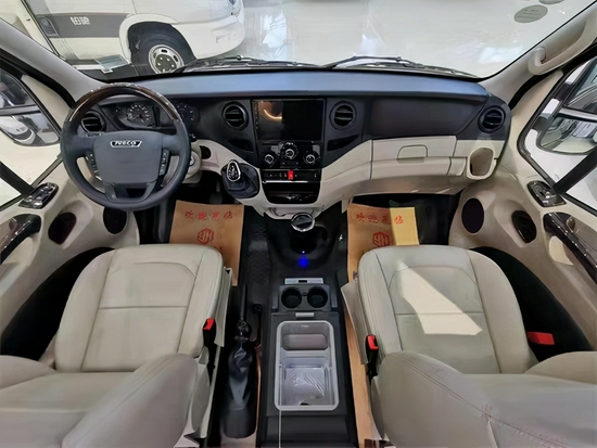 依维柯即便是改为商务车,车身尺寸也是毫不退让,车身尺寸:5990*2010*2660mm,宽大的车身尺寸不禁让人咂舌,同时不超六米的车长让我们使用蓝牌C照即可驾驭它。