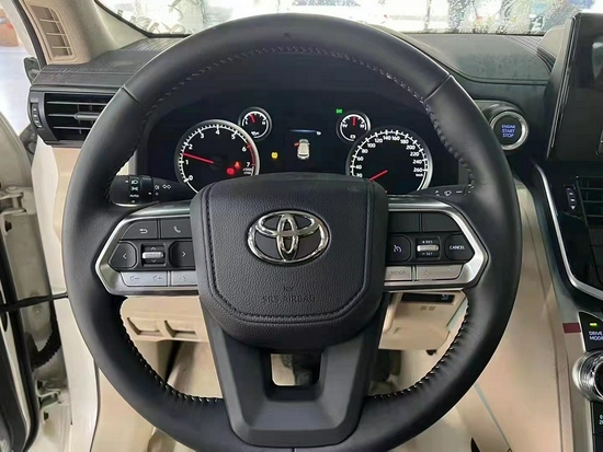 2022款丰田酷路泽LC300走进车内,新车内饰迎来较大的变化,配备了机械指针+液晶显示组合仪表,并搭载全新造型的三辐式多功能方向盘,提升了车内科技感。同时中控台下方物理按键布局也进行了相应调整,让日常操作更加便捷。