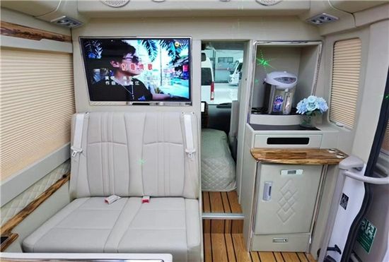 原装进口的埃尔法 (配置|询价)座椅,搭配舒适的通风加热以及电动脚托的配置,为人们的出行提供了更加舒适的乘车环境。这样的舒适的座椅再配备上高大上的办公桌设计,丰田考斯特改装商务车俨然可以成为我们洽谈会议,行车办公的移动办公室。