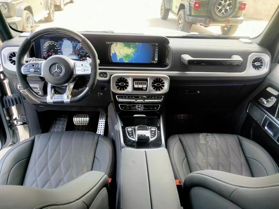 2021款奔驰G63全液晶仪表盘+中控大屏的双12.3英寸屏幕设计在新车上也没有缺席,营造出了浓郁的科技感。当然了,经典的“三把锁”按键自然不会缺失,并且设置在中控台最为显眼的位置。中控台中央位置,精心按照1中、2后、3前顺序安放有三把锁的控制按键,内饰布置在保持G级传统功能位置的同时,作以精心优化,做出了符合身价的科技感和豪华感。内饰颜色多选,满足客户不同喜好需求。