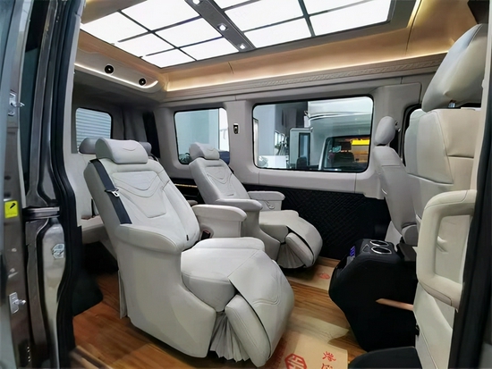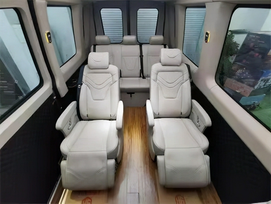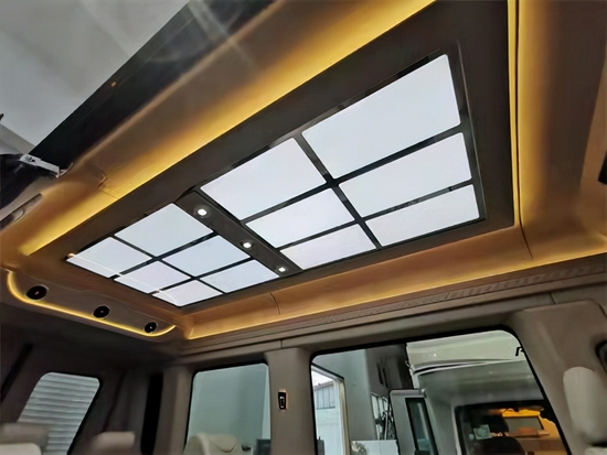 地板采用柚木地板,简约大气后期保养与打理也方便;在前后舱之间配置了一个车载液晶电视娱乐系统加上环绕声音响,虽然没有斯宾特那种超大尺寸的液晶电视,但是用于娱乐以及 影视播放是丝毫不逊色的。