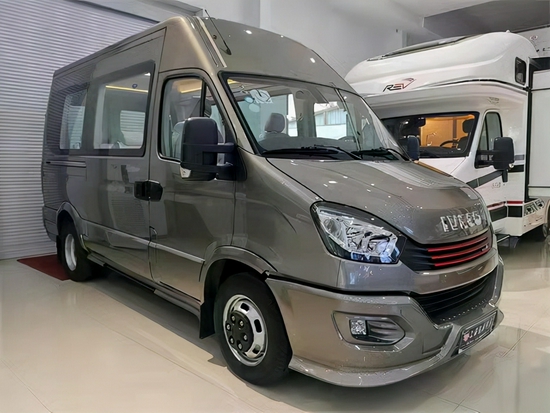 今天给大家来介绍一款依维柯七座商务车,依维柯在国内多以旅居车和房车为主,商务车的车型并不多见。作为稀有车型,个人觉得有必要给大家介绍一下。依维柯商务七座依旧使用的是依维柯底盘,全车以银色为主色调,车头的风格设计也还是依维柯的家族设计,不过在下包围处和旅居车款有所不一样,采用了镀铬件装饰下包围,让整车看起来更霸气。电话:18017691185微信同号。