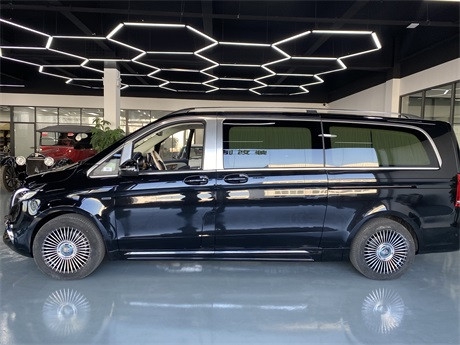 奔驰商务车经典七座格局得以保存,前后双段式全景天窗,向车内出示足够的采光条件,为进一步追求私享静谧,经隔音防噪处置的加固车体构造,装备墨色车窗,内置电动式百褶窗布,后舱的整体作风也采用了和驾驶室相溶的基调,环绕车壁、车顶的麂皮绒绝对称得上是大手笔,座椅扶手及侧边车壁也不乏钢琴烤漆纹饰装点。