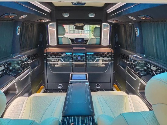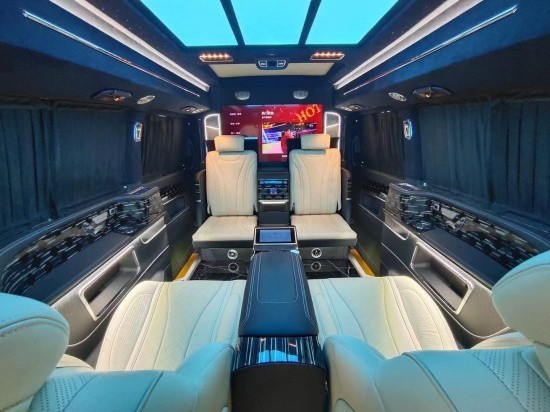 奔驰V260L改装隐藏六座全隔断商务车,后排座椅采用两个迈巴赫62S首长级座椅,带加热,按摩,通风,一键式电动调节记忆等功能。奔驰V260L改装高顶隔断商务车座椅符合人体工程学设计,同时带有电动椅背调节,电动头枕,电动前后调节,一键式伸缩腿托功能,带来头等舱级舒适体验,私家客厅级后舱体验。奔驰V260改装迈巴赫VS900商务车内饰的整体设计是婉约柔和的,整个采用米色为主色调,更显淡雅清净内饰也是定制升级过的,显得高端大气。定制风格采用经典的元素,宽大的航空椅配上舒适头枕,坐在上面就想美美睡上一觉,座椅带有8向的电动调节,超长的腿拖和按摩功能智能座椅甄选顶级材质,菱格纹理彰显精湛手艺。
