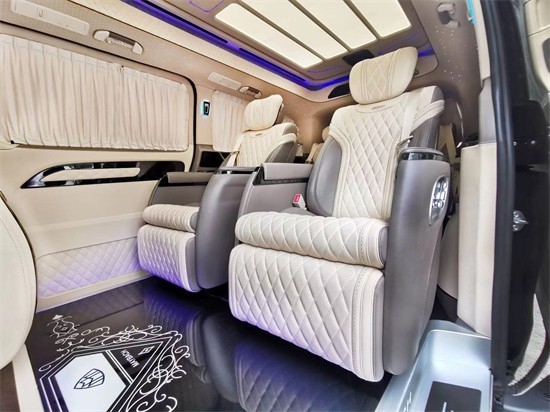 奔驰威霆改装后的中控内饰设计的还是非常不错的,看起来也比较有档次,符合这个价位,该有的标准,内部空间搭配的也是非常不错的。改装后奔驰威霆的内饰基本该有的配置都有了,家用车型有这些配置完全够了。中央屏幕大气,科技感也很足。车子的内饰设计简单,显示屏清晰。真皮座椅,悬浮式中控,分段式天窗,改后的内饰很完美,商务、家庭用车够了。