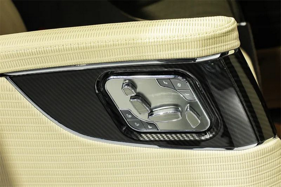 方向盘、座椅扶手外饰板等多个区域皆以碳纤维雕琢修饰,低调中尽显精奢华贵。