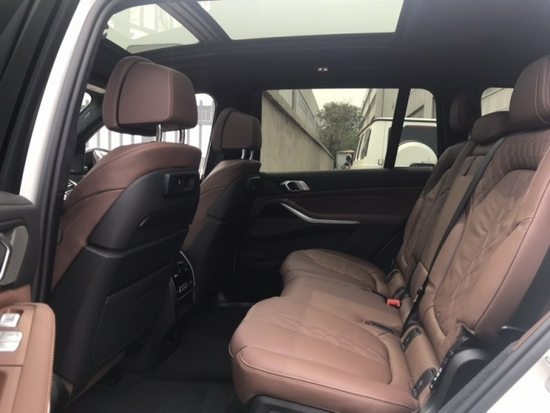 2021款宝马X7的第二排还可选装两个独立座椅以2+2+2的座椅布局呈现。全车座椅采用了真皮包裹质感表现十分突出,并且标配了座椅加热。2021款宝马X7在将第二排的腿部空间调整至两拳后,第三排可以获得一拳的腿部空间,虽然头部空间比较有限,不能与M P V车型相提并论,但2021款宝马X 7的第三排也并不像一般SUV车型那样会有一种压抑感,视野很好,不会被前排的座椅有所遮挡,客观地说,2021款宝马X7的第三排是够用的。