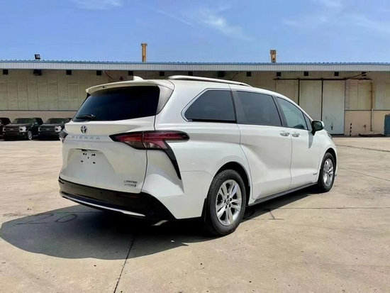 21款油电混合丰田塞纳车尾设计也非常时尚,红色的LED尾灯是整个尾部的最大设计亮点,不仅造型充满运动感,而且照明效果特别出色,醒目的蓝色丰田Iogo,标明了新款塞纳的混动车型身份。