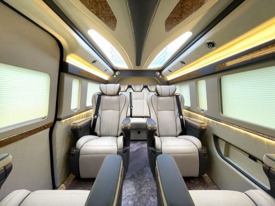丰田海狮后舱第二排、第三排的四个座椅采用进口航空按摩座椅,配备高档真皮,带可任意调节角度的调节。座椅靠背角度可以全部放倒,一个座椅就是一张舒适的床!第二排、第三排座椅都配备了小桌板,乘客完全可以在车里处理很多商务工作。最后方提供了一排双人沙发座椅,设计成了带有滑轨可前后移动并且可以折叠的样式,晚上需要休息的时候就可以将沙发放倒。丰田海狮作为一款豪华的商务面包车,集商务接待以及移动房车为一体,在现在的商务接待以及政府接待的市场上都深受欢迎,丰田海狮改装商务车改装版成为商务用车的佼佼者。丰田海狮改装商务车为我们在旅行中提供了优质的需要,再加上车内增加了隔音设备,对回声的处理,丰田海狮改装商务车,更是为我们提供了最舒适的环境,宽敞的空间优雅的内饰,动听的音乐,这一切都是丰田海狮改装商务车的独特之处。