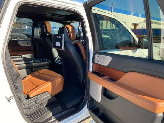 2020款林肯领航员3.5T的内饰非常奢华,多功能方向盘,中控台的造型与宽大的车身相呼应,新车全部真皮包裹座椅,内饰采用桃木搭配设计,高贵典雅,加高加大的车身除了增加内部空间外,还给人营造一种尊贵典雅的感觉。最新林肯领航员新车采用了2+2+3的座椅布局,第二排采用了两个独立座椅,座椅内侧均配有扶手,舒适度超强。