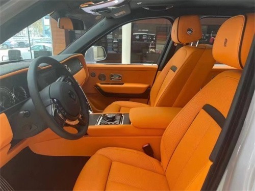 劳斯莱斯库里南座椅设计大胆又充满自信,彰显劳斯莱斯汽车的品质与工艺。座椅采用简洁而现代的马蹄铁图案,强调座椅的支撑力。后排中央固定扶手可容纳带有威士忌、香槟酒具的酒柜和冷藏箱。专为幻影长轴距版车型打造的“静享座椅”,座椅间固定的中央扶手台设有存放定制香槟酒具的酒柜和冷藏箱,电子控制的座椅角度,并带有按摩功能及座椅扶手加热功能。腿部支撑可电动伸展90°,为后排乘客带来极致舒适的体验。 2021款库里南。黑外热情红内饰。四座。流星顶。前后通风座椅。按摩。后排娱乐。定制音响。后排小桌板。中央扶手酒柜。