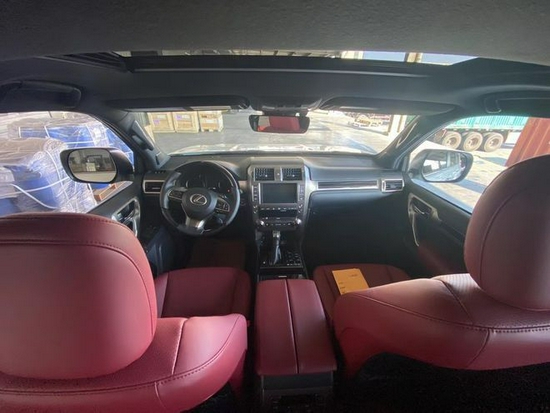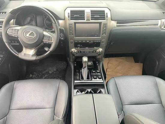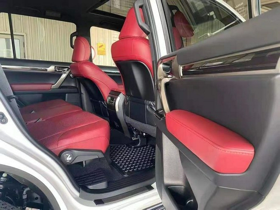 雷克萨斯GX460七座、非承载式车身6挡手自一体、18寸轮、12气囊、空气悬挂、底盘升降动态调节悬挂系统(KDSS)、中央差速锁、天窗、大灯清洗、打孔皮革座椅、电动座椅主驾带记忆、智能钥匙、三区自动空调、8寸屏导航、蓝牙、倒影电动真皮多功能方向盘、定速巡航、桃木内饰压监测、电动调节外后视镜。