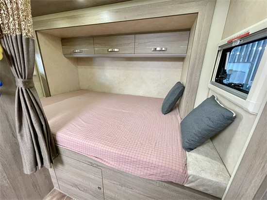 从外部来看,戴德这款房车具有一个超大型的储物空间,后尾部贯通处的储物仓上下可以分为两层进行使用,同时也是目前所有的双拓房车中储物空间最大的。
