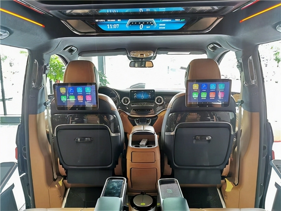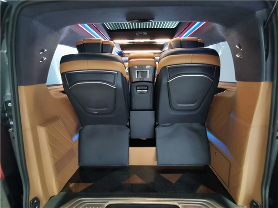 梵兹慕后仓两块11.2英寸独立控制屏是我司研发产品专利,左右两位贵宾乘客可以单独控制车内电控系统,车内氛围灯、顶部照明灯、氛围灯、茶具、空气净化器等电器部件,多种车内灯光的配置让后仓豪华感十足,配置更加丰富