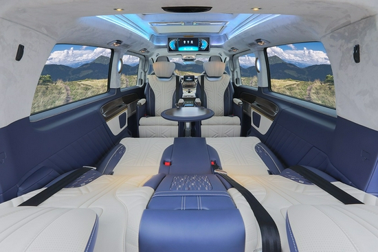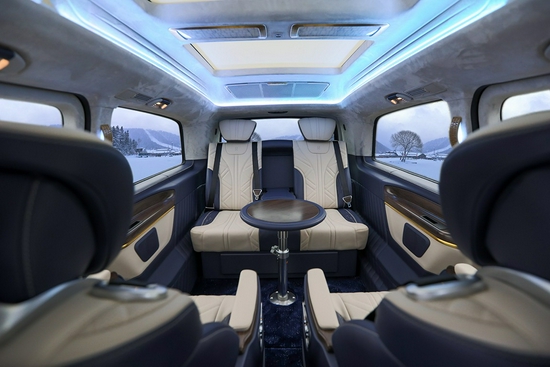 奔驰V260改装商务车是一款颇具传统作风的多功用商务用车,新车座椅可在轨道上前后推滑,为了扩展空间把原先中置的发起机向前移,加上下压的底盘,构成一个超大的内部空间。