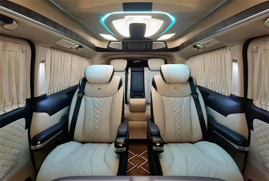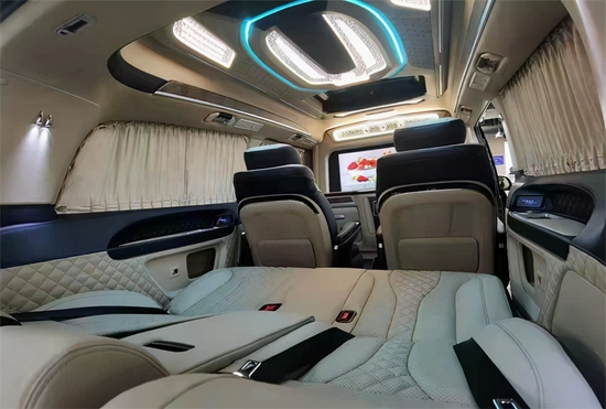 乘坐舱采用全隔断布局,全车采用高光地板,真皮座椅,左右电动伸缩小桌板,吃饭、电脑办公,可随意搭配自己的每天行程。电动窗帘,充分保护乘客舱隐私不被泄露,给你安静祥和的空间。车载全球Bose影院级音响设备,前后舱通话设备,车载空气净化器,缔造完美商务氛围,给你晋升的想象空间。