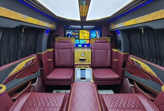 凯迪拉克总统一号桌椅设置操控屏,简略便利,扶手台影藏一个精约的储物柜。奢华游艇木地板,有种复古风格凯迪拉克总统一号将策版凯迪拉克总统一号将策版让你在商务谈判中更胜一筹,全车选用真皮包裹具有透气性、电动按摩及电动加热体系,确保整了质感的一起也确保了座椅的舒适性。