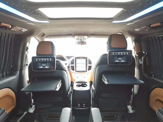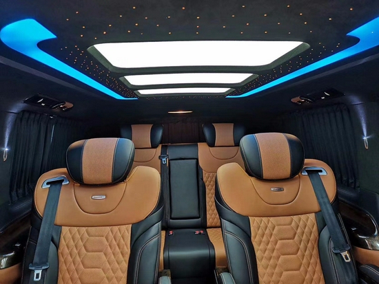 2019款奔驰威霆高顶7座*的提升在于其贵宾舱的升级。整车采用2+2+3的座椅布局格式,空间一如既往的大,在这里工作,休息,就如在家中般舒适。乘坐感方面的设计理念更贴生活,第二排采用进口航空座椅的通风、加热、按摩、旋转功能,让您享受*惬意舒适的乘座环境。航空座椅中的扶手可加装触控屏。商务车多种内饰改装方案请来电咨询。进入奔驰威霆7座改装后舱,立刻就会被它的豪华绚丽而征服,整车环保真皮包裹,游艇级柚木地板铺设,豪华感无处不在。